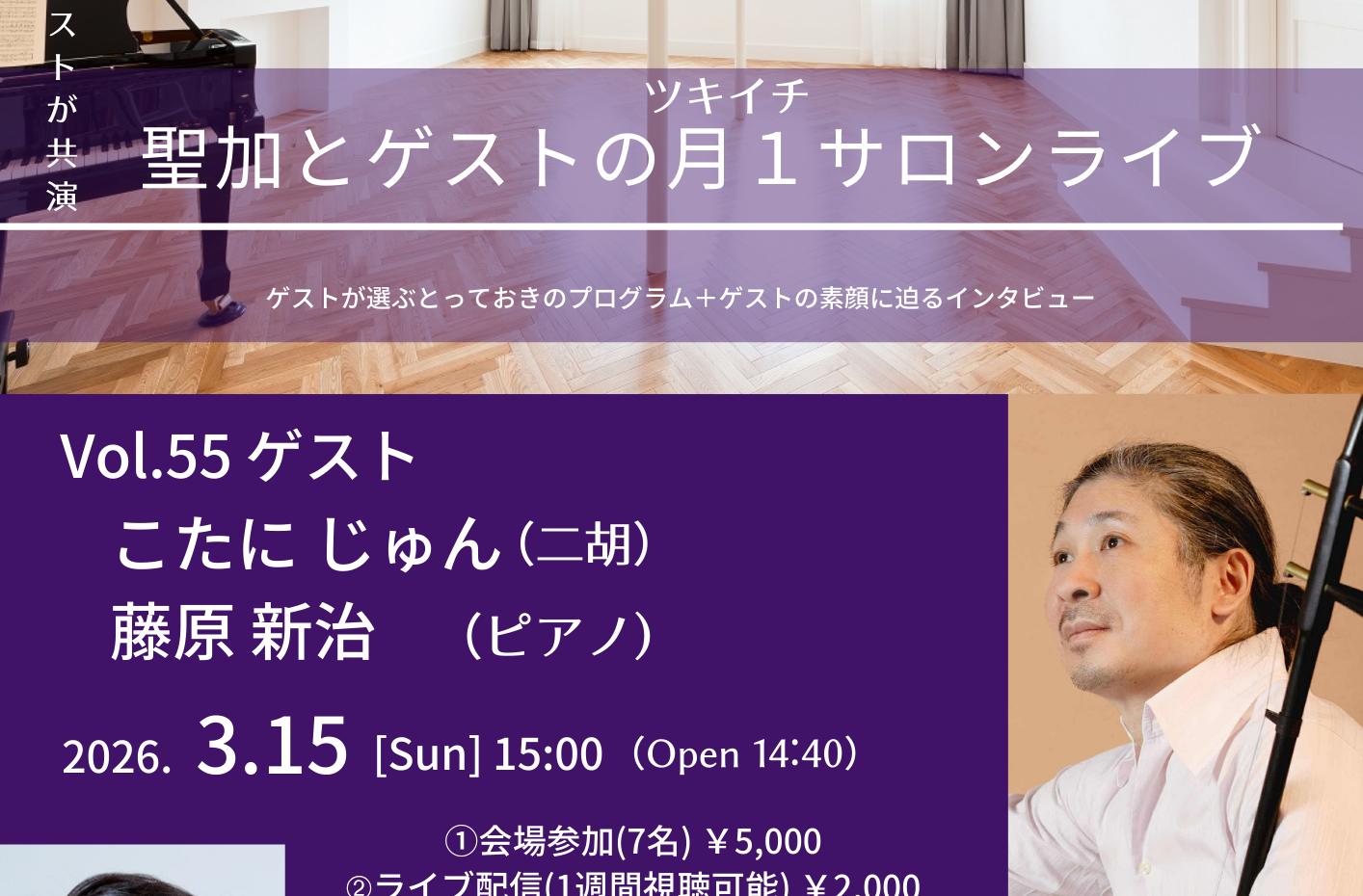 3. 聖加とゲストの月1サロンライブ Vol.53(ライブ配信付公演)